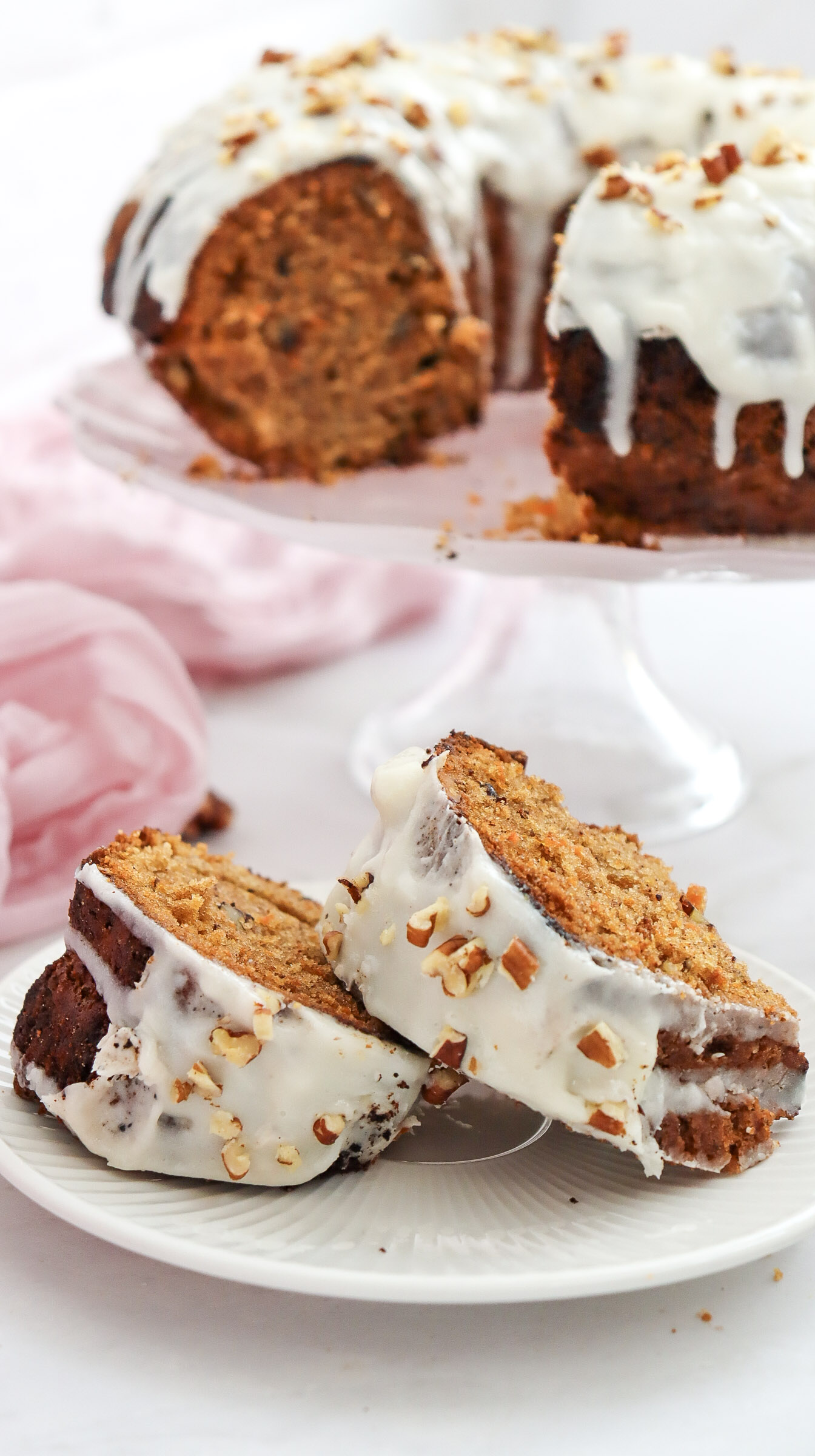 The combination of grated carrots, oil, and maple syrup keeps this carrot bundt cake soft and moist.